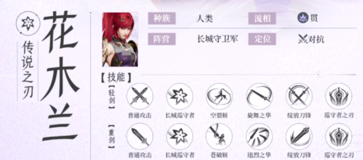 花木兰作为长城守卫军的实际统帅,凭借刚毅果决的意志与登峰造极的剑术赢得全军敬重。其技能组合兼顾机动性、爆发输出与战术控制:“旋舞之华”投掷长剑触发范围剑气,对路径及落点周围敌人造成持续伤害;二次释放可瞬移至剑位并发动强力斩击,完成精准收割;“刀锋”支持轻重剑形态自由切换,配合“巡守者”技能,既能将单体敌人击飞,也能挥动巨剑连续劈砍,形成兼具控制链与AOE压制的复合打击效果。