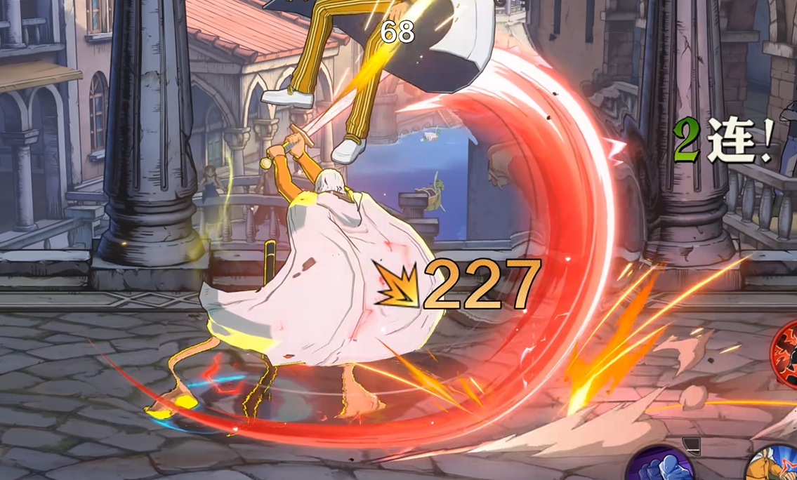终极技能以高爆发与强视觉表现著称:雷利向前踏步凝聚霸王色霸气,周身浮现赤色蔷薇意象,最终挥出大范围斩击。该技能具备高额单体伤害与残血收割能力。终结技为V字形扩散剑气,援护技则体现为快速入场突袭,所有技能当前均处于最终调优阶段,正式实装版本可能存在细节微调。