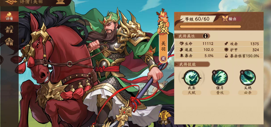 关羽:依赖“偃月”武器触发风属性全额伤害,其基础伤害数值直接决定起手压制力。必杀技同样为风属性,基础倍率提升至300%,且具备多次释放能力——当单次输出不足以终结目标时,可连续发动形成连击节奏。天赋强化其近战突击定位,支持追加伤害持续触发;若叠加“威震华夏”状态,整体输出还将进一步提升。
