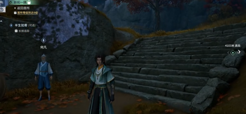 任务开始前必须达成两项硬性要求:第一,必须已完成主线任务"遥远的回响";第二,角色波流等级需达到5级或以上。满足条件后,前往望霞峰北侧半山平台——沿主路径向上行走,转入左侧石阶继续攀登。穿过松林区域后,会发现一处悬于山体之外的独立平台,平台边缘矗立着青石碑,靠近时将自动弹出任务接取提示,无需战斗,直接交互即可开启"半生如寄"任务。
