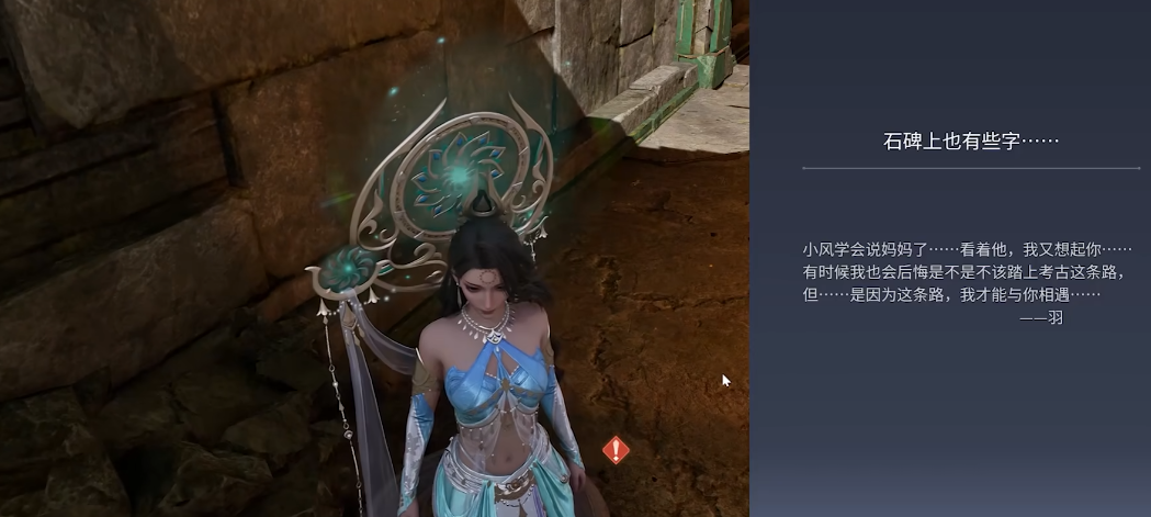 与蒋风完成对话后,沿着路径深入遗址内部,对指定的碎石堆进行调查。返回蒋风处交付初步信息后,跟随其移动至遗址核心区域,定位青铜石碑并开展调查。若尚未完成前置任务链,此处可采用替代方案:启动遗址中央的压力板,将地面燃烧果弹射至四周石碑,触发机关后获取青铜石碑碎片,将其归位即可读取碑文内容。