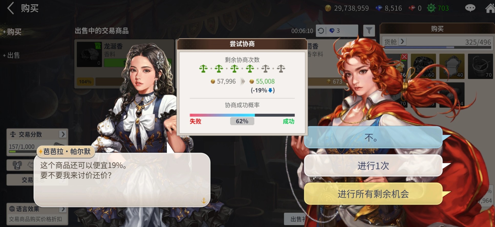 船员配置上,前期无需投入高额招募成本,直接选用初始可得的经济型交易专精角色即可。重点筛选具备“议价加成”“多语种沟通”技能的成员,这些属性能切实提升买卖成交率与单次利润空间。实际交易时只需进行1-2轮合理压价尝试,过度反复议价反而易触发失败惩罚,拉低整体收益效率。