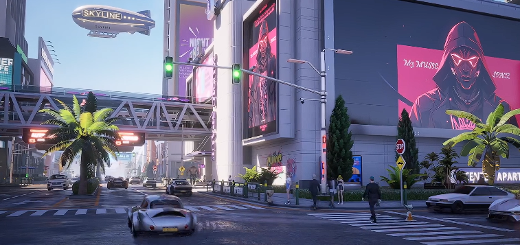 角色外观系统允许深度自定义外观:创建阶段除常规体型参数外,可植入机械义体、融合生物改造组件,形成跨物种的视觉风格。后续可通过“返工协议”随时调整义体配置与表层材质。所有NPC的行为严格依照昼夜节律与气象变化——晨间活跃度上升、雨天减少户外活动、浮空航道随潮汐周期调整悬浮高度,城市景观因此呈现动态演进的效果。局部降雨不仅改变光照与反射,还会触发地面积水、行人撑伞、霓虹灯雾化等物理反馈细节。