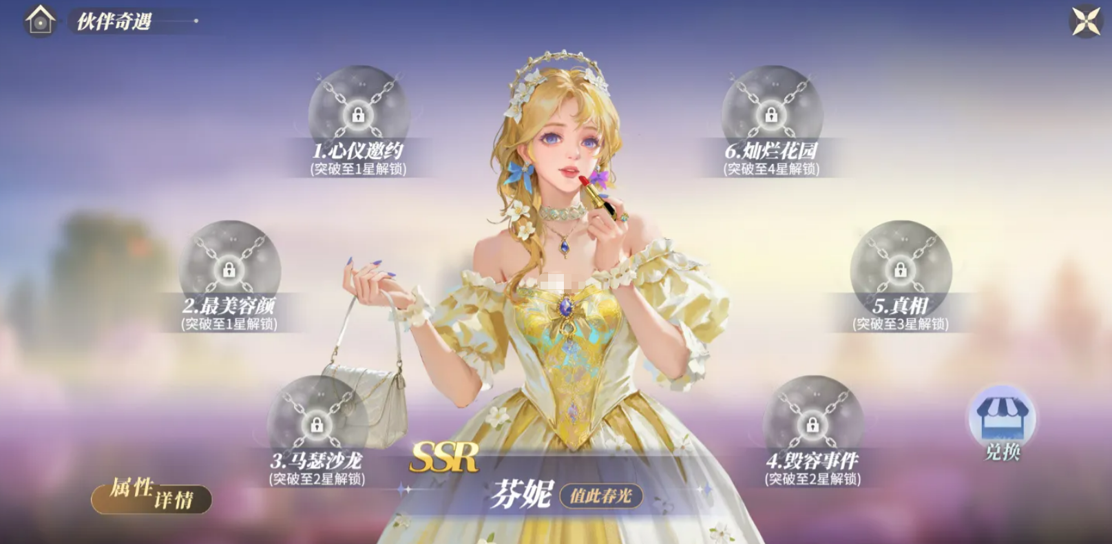 限时寻访【值此春光】开启,玩家可通过该寻访获取芬妮本体及万能奇遇卡片。该卡片通用性强,适用于全部伙伴的奇遇系统,并非芬妮专属,具备长期培养价值。成功获取奇遇芬妮后,可在换装界面启用专属礼装「衣香丽影」,展现全新视觉形象。