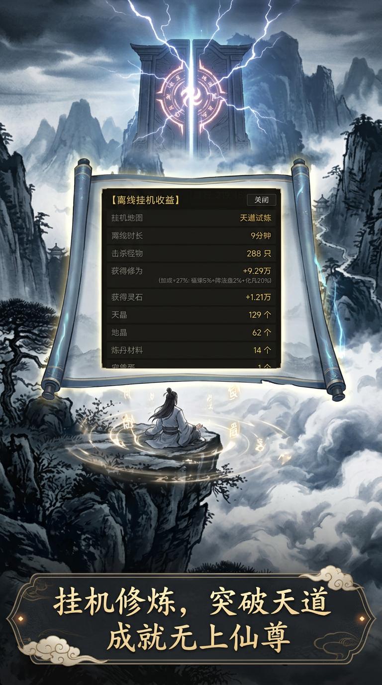 挂机修仙传以经典回合制战斗为基础,结合当下流行的文字修仙叙事模式,打造沉浸式修仙体验。玩家无需频繁手动操作,通过全自动挂机即可完成角色成长、境界提升与资源囤积。游戏中设有炼丹、炼器、御兽、闭关、渡劫等核心修真玩法,所有关键流程均支持离线进行,探索、采集、炼制等操作无需手动寻路或反复点击。