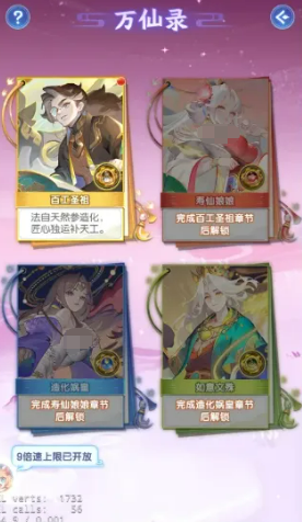 “万仙录”由四册典籍构成,分别对应四位曦幻神仙,每册自成独立叙事地图。玩家沿路径逐格前行,每步需消耗1根梦之羽。每位神仙共设三个章节式小故事,需依序完成全部章节并抵达指定核心节点,方可触发专属答题环节。需特别注意:章节解锁具有严格的线性逻辑,前一位神仙的故事未全部通关,后续神仙的地图将无法开启。