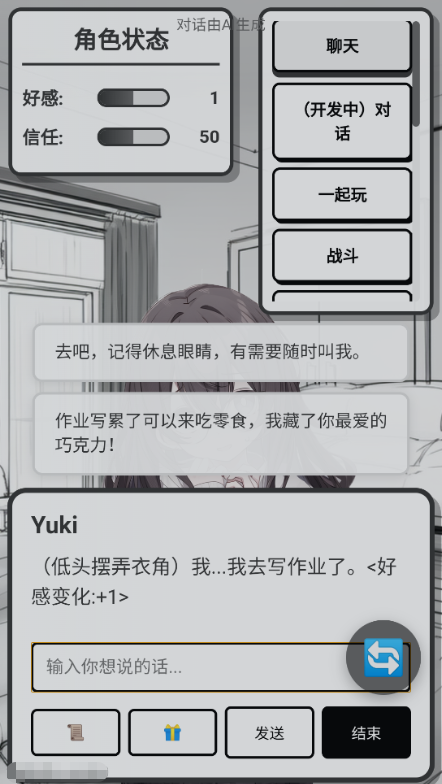 对话系统融合AI驱动的实时文本与语音交互,每位玩家的交流过程均具独特性。鼓励性话语、真诚赞美,乃至适度幽默调侃,均能有效提升Yuki的情感数值。值得注意的是,当亲密度积累至一定水平,Yuki将开始撰写个人日记——这是洞察其深层偏好的重要窗口。日记内容涵盖日常习惯、明确喜好与禁忌事项,同时记录当日心情变化,为后续精准互动提供数据支撑。