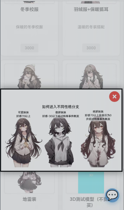 完成阶段性小任务后,Yuki会赠送金币奖励。该货币可用于购置家居装饰(提升居住环境舒适度)及服饰配件(触发换装互动,增强亲密度)。部分限定道具亦需金币解锁。礼物馈赠需遵循“高契合度优先”原则——仅当所赠物品匹配Yuki当前偏好时,方能获得最大好感增幅。剧情分支选项则直接塑造其人格发展轨迹:若频繁选择依恋型回应,Yuki将呈现温顺黏人的“小奶狗”特质;中立倾向的选择则导向冷静疏离的性格设定。不同路径对应独有剧情线,建议在关键节点提前存档,以便多线探索。