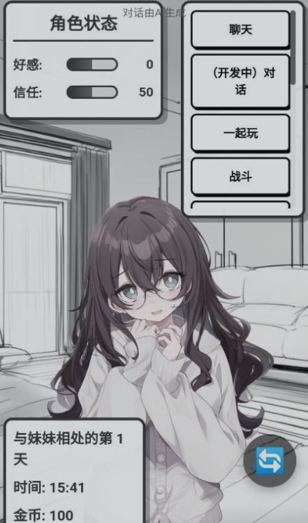 《妹居物语》的核心体验并非依赖传统数值养成,而是以“真实陪伴感”为基石,构建沉浸式同居生活模拟。玩家与角色Yuki一同开启日常起居,在自然时间流中逐步深化情感联结。开局并无速成捷径,好感度提升需依托持续、细腻的互动节奏——这正是本作区别于同类产品的设计内核。