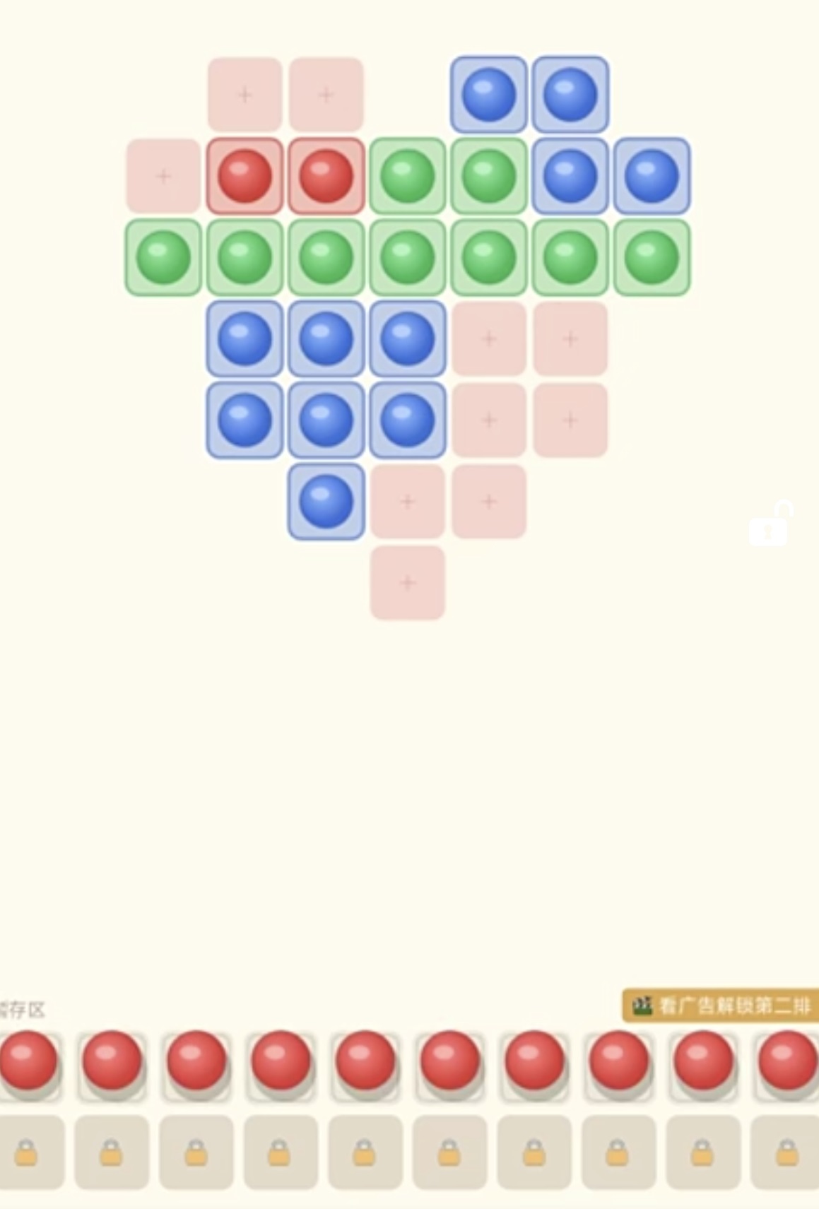 游戏采用经典像素美术风格,界面设计简洁干净,整体视觉效果温馨治愈。玩法设计高度还原实体拼豆手工过程:玩家通过点击拖动彩色豆粒,按颜色分类、精准嵌入网格,慢慢拼出完整的像素图案。每次成功落位都会伴有清脆的音效反馈,带来即时的满足感。操作全程只用单点触控,没有技能条、没有冷却时间、没有体力限制,适合所有年龄段的人在通勤、午休等碎片时间随时开一局。