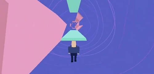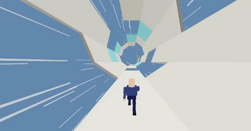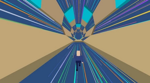 本作以高速视觉节奏与几何结构变化为亮点,整体画面采用低多边形风格,配合持续加速的隧道旋转动效,带来强烈的纵深压迫感和动态视觉张力。玩家所处视角随角色恒定前移,场景由多个可踩踏面构成的立体管道组成,障碍形态均基于三角形、四边形等基础几何体生成。