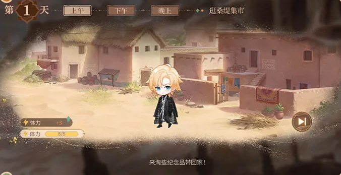 活动整体分为五大板块:日程规划、流金秘境、调查手册、风沙密令、琥珀商路。在"日程规划"中,玩家可以自由安排与角色桑缇的每日行程,包括集市闲逛、沙漠探险等活动,不同决定会触发独特的分支剧情,提升代入感与叙事层次。