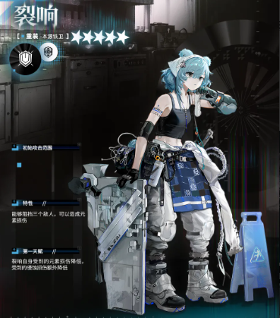 裂响是五星重装职业干员,分支定位为本源铁卫。该分支在高练度队伍中出场率不高,主要用于前期关卡攻坚,中后期队伍配置成型后,其战术价值就比较有限了。