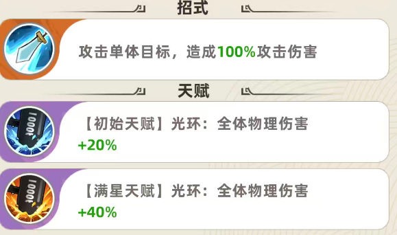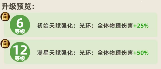 随着星级提升,袁绍的增益能力会阶梯式增强:6级时天赋强化为+25%物理伤害;升至12级满星后,该增益提升至最高值+50%。这一数值是当前版本袁绍所能提供的极限群体物理加成,也是其战略价值的巅峰体现。若队伍以物理输出为核心,特别是追求高爆发或持续站桩输出的战士体系,将袁绍培养至12级可显著提升整体DPS上限。