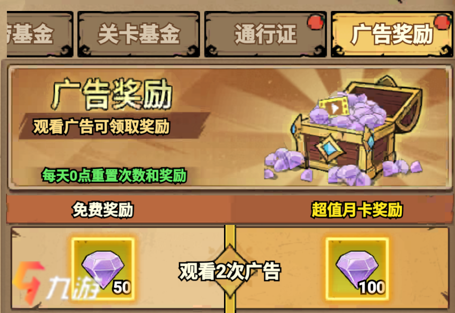 广告激励:每天观看广告即可获得钻石奖励,操作便捷、门槛极低。完成10次广告观看可获取500钻石;已开通月卡的玩家还能额外获得1000钻石,总计单日最高可获得1500钻石。