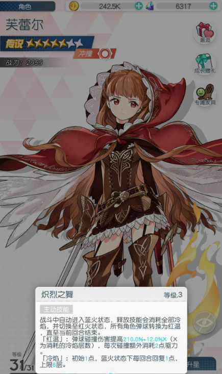 第三位推荐角色为芙蕾尔。在当前版本中通常作为冲撞队的主要C位角色。其技能可大幅提升自身被动伤害倍率,并通过强化弹力机制提升弹球碰撞频率,从而延长连锁反应链。觉醒后,伤害增幅进一步扩大,尤其在对抗高血量单体目标(如精英怪与BOSS)时表现优异。但需注意,芙蕾尔缺乏对弹球特技效果的叠加能力,难以自主构建多层增益体系,因此需搭配具备特技强化、元素附着或状态延长类技能的队友,以补足持续输出循环中的关键环节。