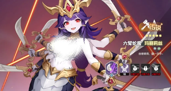 六臂蛇魔玛丽作为传说品质的限定角色,在游戏前期具有重要的战略意义。她的核心机制是“狂野状态”——激活后不仅能大幅减少大招的能量消耗,还能为全体队友提供持续减伤效果。这一双重效果的协同作用,让她在装备与等级尚未完善的开荒阶段,既能稳定输出又能承担团队伤害,有效缓解新手期的生存压力,显著提升主线关卡和日常副本的通关流畅度。