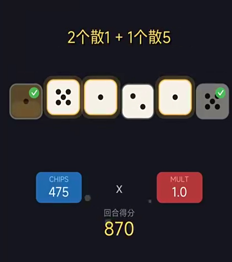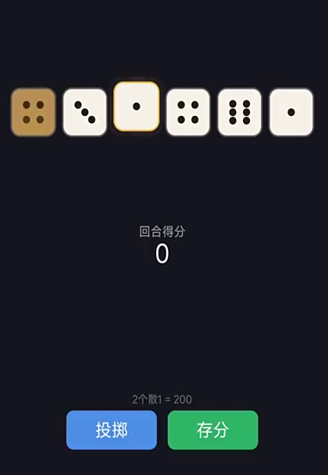 游戏的核心玩法围绕六面骰展开策略推演:开局投掷6枚标准骰子,1点与5点为固定计分面,三枚及以上相同点数可触发连击积分加成,达成指定总分目标即视为通关成功。