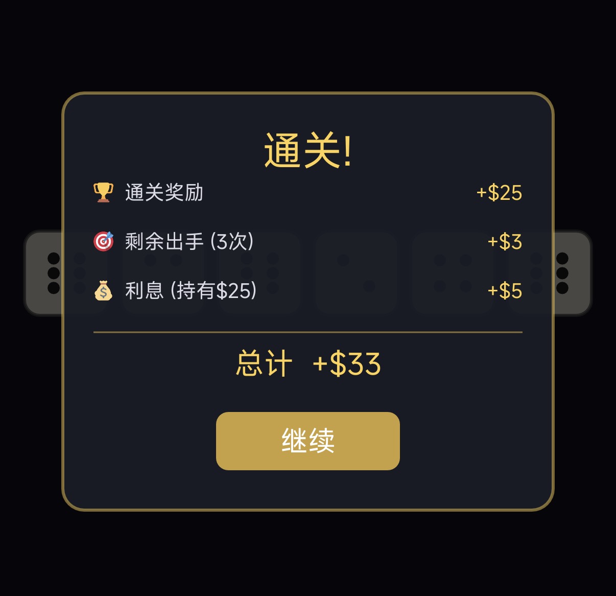 每局提供3次保留部分骰子并重投其余骰子的机会,是否保留、保留哪些点数、何时终止投掷,构成了整局胜负的关键判断点。此外,游戏中还配置了若干功能性道具,可在特定局面下辅助提升单局积分效率。