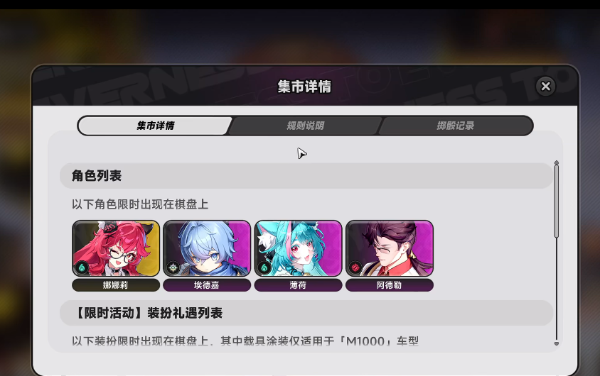 除基础皮肤外,《异环》构建了多层级外观获取体系。官方定期上线主题时装,包含节日限定、联动系列及剧情专属等类别。获取途径主要分为三类:其一为商城直购,所有常驻及部分限时时装可通过该渠道稳定获得;其二为角色抽取机制,在特定卡池中,玩家不仅可获得新角色,还有概率同步获取对应角色的专属皮肤、技能招式及配套载具涂装;其三为活动玩法内嵌式产出,例如“限定集市”模式中,玩家通过掷骰推进棋盘,沿途奖励包含角色皮肤、宠物形态及技能特效,即使未主动抽取角色装扮,亦可能在角色获取过程中附带解锁皮肤。