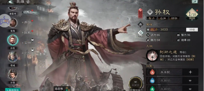 孙权是整套体系的核心引擎。其核心机制在于“数值压制反馈循环”:每当己方某项基础属性(武力/谋略/统率)超越敌方对应目标时,不仅能触发额外增益效果,还能同步施加基于属性差值的附加伤害。该机制生效的前提是孙权达到蓝色品质——此为关键质变节点。未达蓝质前,数值压制仅提供增益;达成后,压制成功即触发高额真实伤害,且该伤害随回合推进呈指数级增长。因此,培养优先级必须明确:孙权升蓝质>其他任何资源投入。