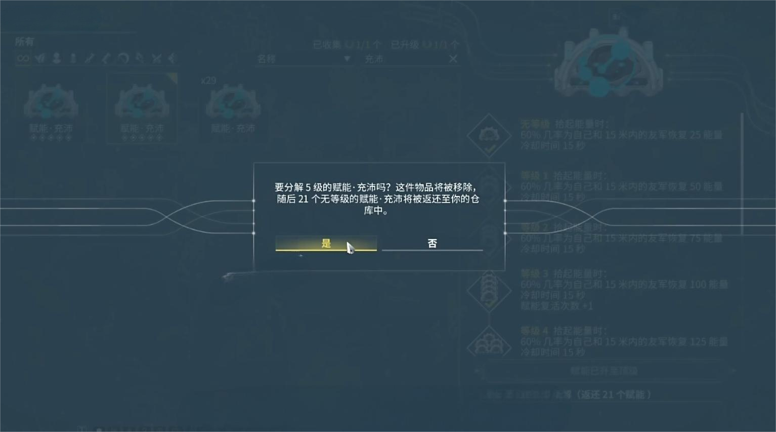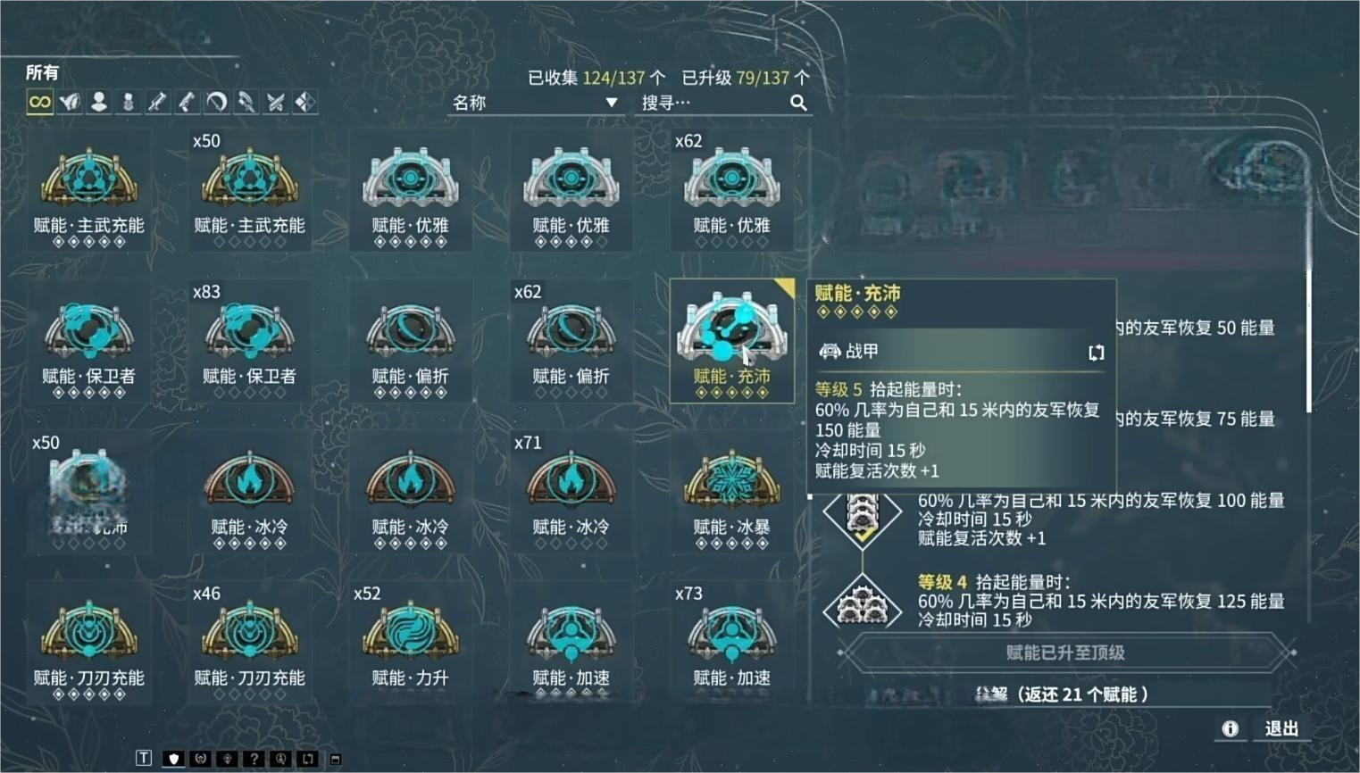 当前游戏中共存在八类赋能类型,每件战甲或武器在满足条件后均可解锁专属槽位。其中,战甲初始便开放两个赋能槽,且整体获取渠道最为丰富——衰退实验室与深层科研任务均为高概率产出来源,是玩家持续强化战力的核心资源节点。
