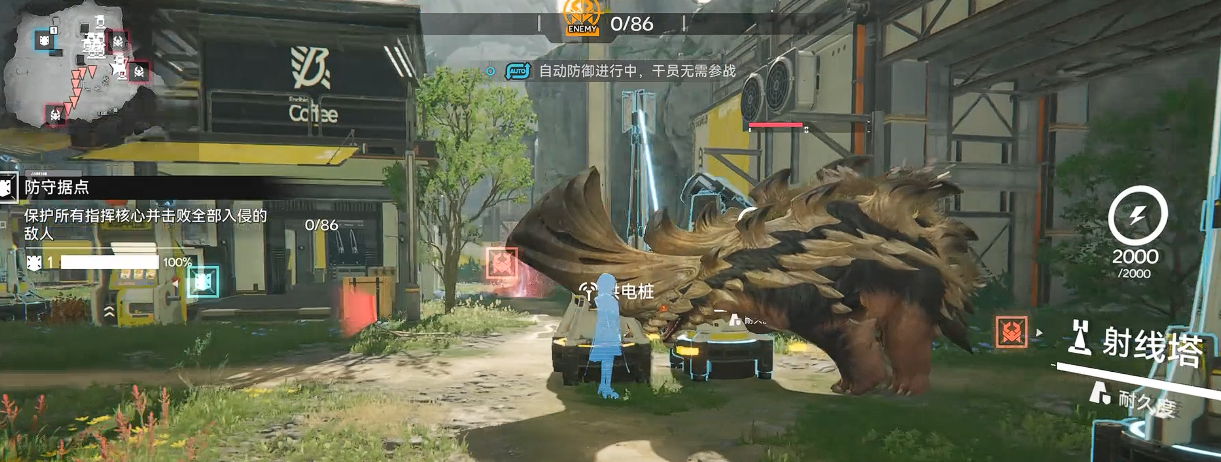 所有防御塔运行依赖能量供给,因此首期建设的设施必须为供电桩。该装置不直接造成伤害,但能稳定提升其范围内所有防御塔的攻击频率,并持续输送能源,避免因供能中断导致火力出现断档。基础输出的主力推荐使用炮塔:造价低廉、攻速突出,对单体目标响应迅速,适用于应对前期密集出现的中小型敌人。