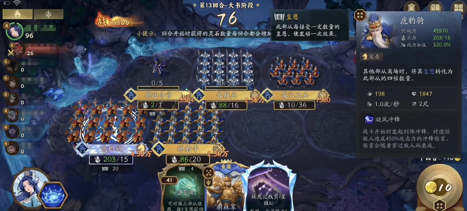 部从隶属于不同势力阵营,各阵营拥有独特的效果体系与协同机制。例如帝国系部从多以“皇恩”为核心触发增益,效果包括生命恢复、伤害加成或技能重置等。所有部从详情均可在游戏图鉴中随时查看,支持对局中随时调取。除三连升星外,提升部从战力还有两条核心路径:一是通过数量叠加激活阵营羁绊效果,特定数量同势力部从上阵后可获得额外全局增益;二是开局选择适配阵容的幻神,其被动能力可针对性强化某一类部从的基础属性或技能效果,实现战力的精准补足。