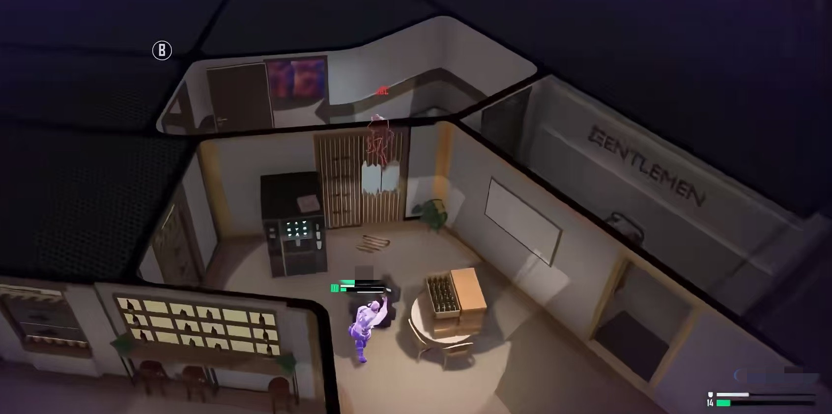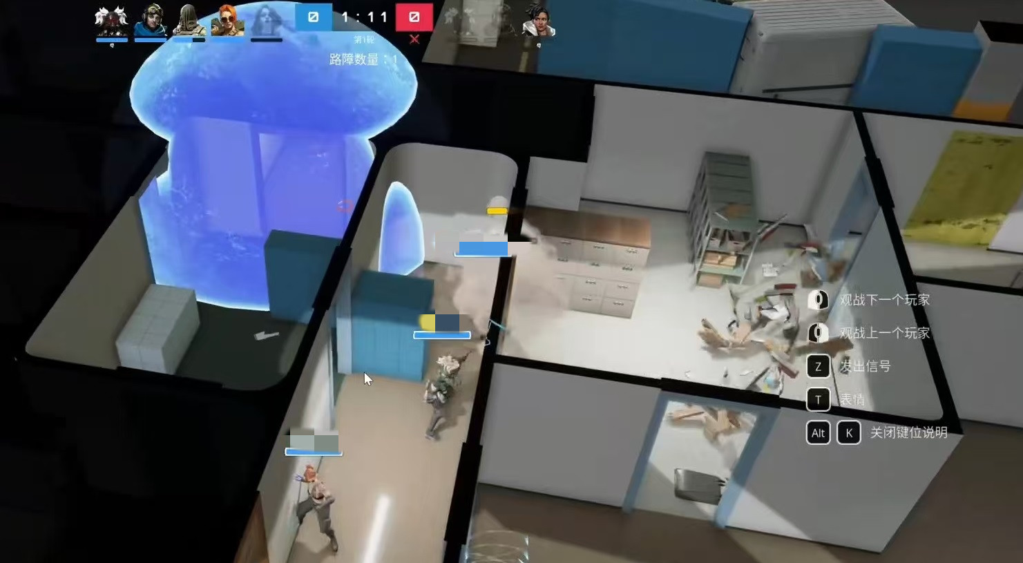 游戏采用俯视角操作设计,可有效缓解传统TPS/FPS品类普遍存在的3D眩晕问题;单局时长约10分钟,注重快节奏对抗与即时决策;环境交互系统为核心亮点之一,支持墙体破坏、掩体摧毁等动态战术行为,大幅提升战局策略深度与临场变化性。