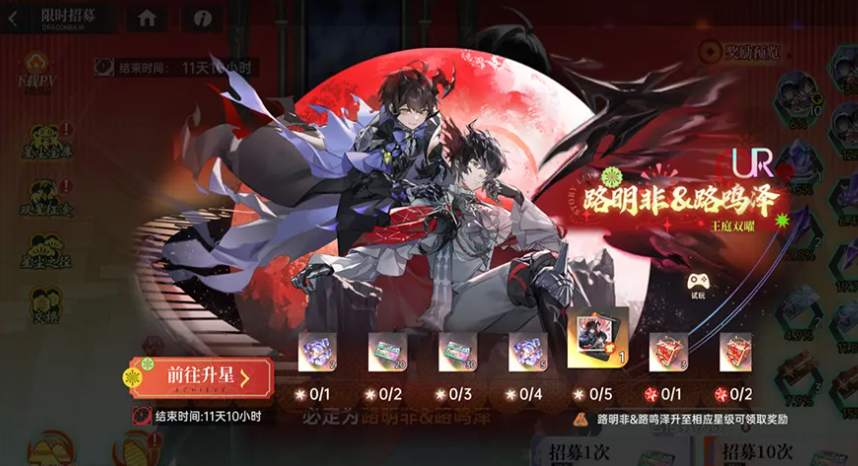 当路明非或路鸣泽任一角色达到指定星级后,即可激活对应档位的升星奖励,包含属性加成、专属技能强化及限定外观等。两角色专属外观将在升星达成后自动发放至邮箱,无需额外操作。