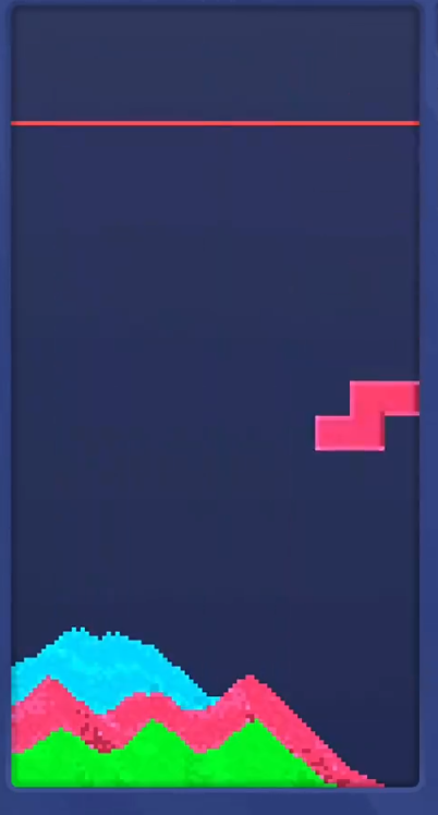 本作在传统俄罗斯方块基础上进行了深度创新:下落元素并非固定方块,而是具有流动性的彩色沙粒。沙粒落池后会因重力自然沉降、填充空隙,形成连续可塑的堆积体。玩家需通过精确预测落点与旋转时机,引导同色沙粒在横向层面实现满行覆盖。