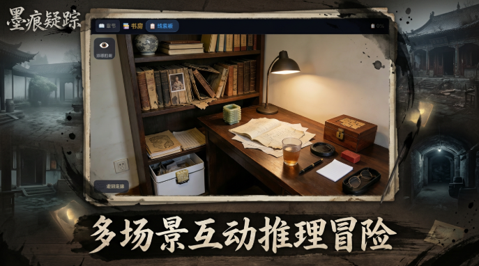 游戏核心体验围绕"叙事驱动型解谜"展开:每个章节均以具象场景为单元,如泛黄手稿堆叠的书房、檐角悬垂枯梅的旧宅天井、墨香未散的制墨工坊等。场景内嵌套多重交互机制——需辨识甲骨文变体铭文、解析庭院布局中的五行隐喻、比对不同年代族谱中墨迹深浅差异等。所有谜题拒绝直给提示,强调观察—联想—验证的闭环推演,考验玩家对古文字学常识、符号逻辑及现实细节的综合调用能力。