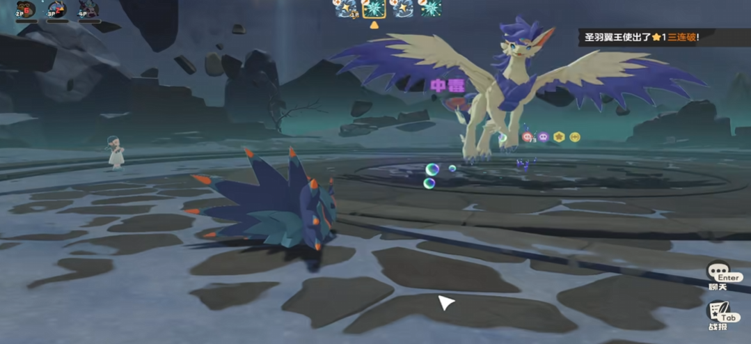 通过前置副本后,正式开启“翼王副本”。推荐携带刺灰虫作为出战精灵,并配置“甩水”与“毒雾”两个技能。战斗开始后立即释放“甩水”技能,此后每当行动箭头指向“三连破”技能时,继续使用“甩水”,累计释放四次后切换为“毒雾”,随后保持待机状态两回合,即可顺利完成挑战。