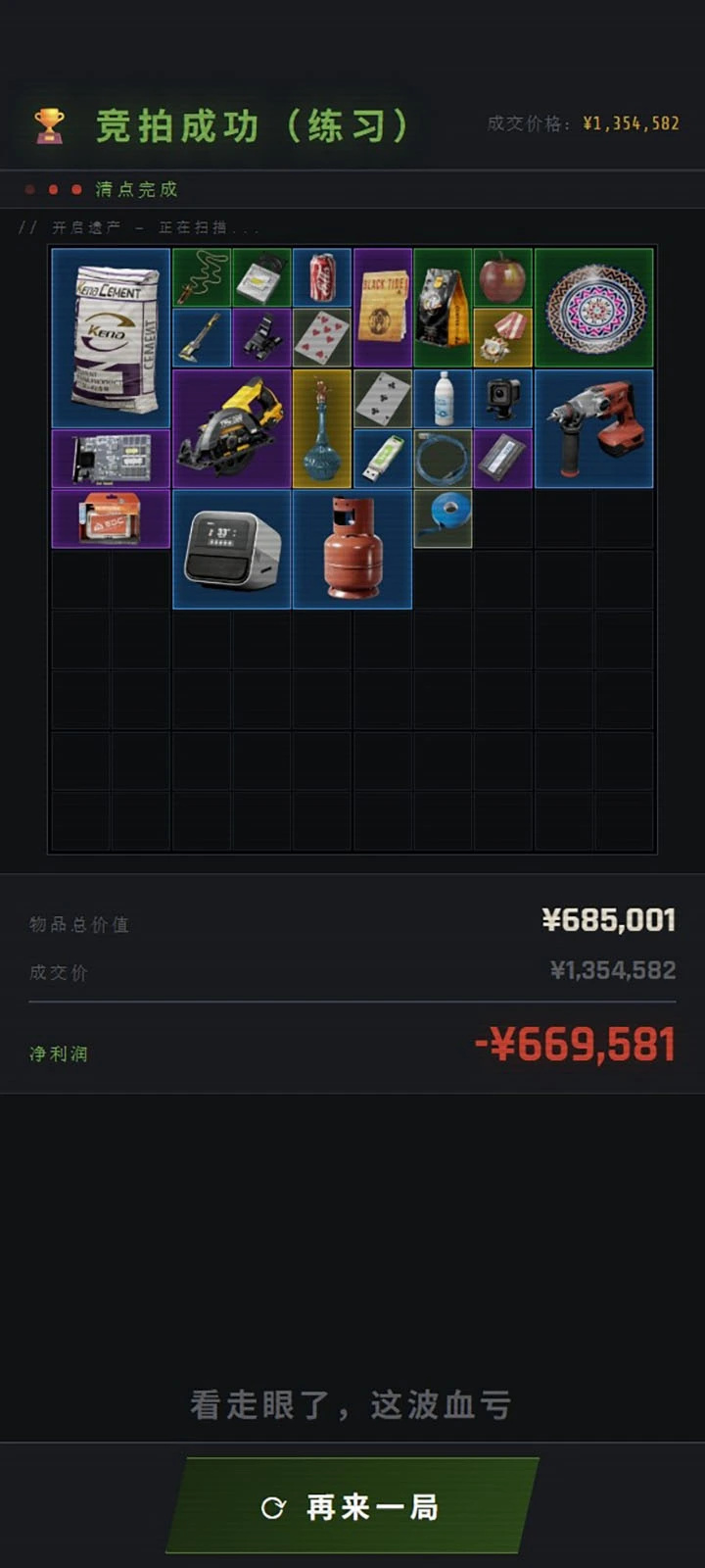 游戏的核心玩法围绕"一场拍卖即一次经营"的理念展开。玩家需要综合评估遗物状况、市场热度、竞拍者行为倾向,灵活设定起拍价和保留价,并在竞拍阶段运用"秒杀"和"梭哈"两种关键操作快速应对局势变化。每轮结算即时显示盈亏情况,配合手动输入心理价位、物品鉴定结果联动调价,让每一次出价都成为信息差和心理战的直接体现。故意制造流拍也是一种可控策略,用于干扰对手节奏或重塑标的稀缺性,大幅增加对局的不确定性和重玩价值。