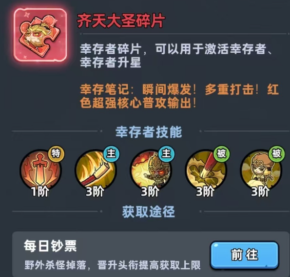关于“生存33天齐天大圣怎么玩”的具体实践路径,玩家可依据上述机制要点进行节奏化部署:前期专注碎片收集与等级突破,中期强化暴击属性堆叠与技能升级,后期融入主流阵容体系。该角色不依赖高额充值,平民向养成路线清晰可行,中后期亦能无缝衔接高难度内容与竞技场环境。