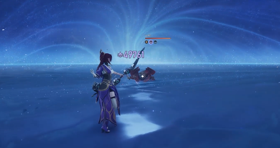 伽罗拥有短弓与长弓两种形态转换机制。常规状态下普通攻击为连续射击;触发完美闪避或释放二技能后,下一次普通攻击将被强化为"渡灵箭",并自动切换至长弓形态。长弓形态下,每次施放强化普通攻击可额外获得1支渡灵箭;暴击时将追加发射"追魔箭"。三技能"静默之箭"可对目标造成伤害并附带击退/击飞效果,释放后返还2支渡灵箭;四技能"纯净之域"开启时对范围内敌人造成击飞,并提升自身暴击率;终极技"神箭"可发动高额单体爆发伤害。