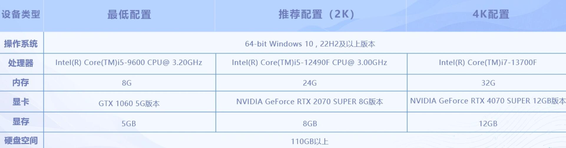 PC平台对硬件的要求更高:最低需要16GB运行内存,可以支持中等画质和1080P分辨率;如果追求高帧率和高动态范围的视觉效果,建议配置24GB的运行内存;如果要开启4K超高清画质和全特效渲染,则需要32GB及以上的容量,以避免因内存交换而产生的卡顿和掉帧问题。
