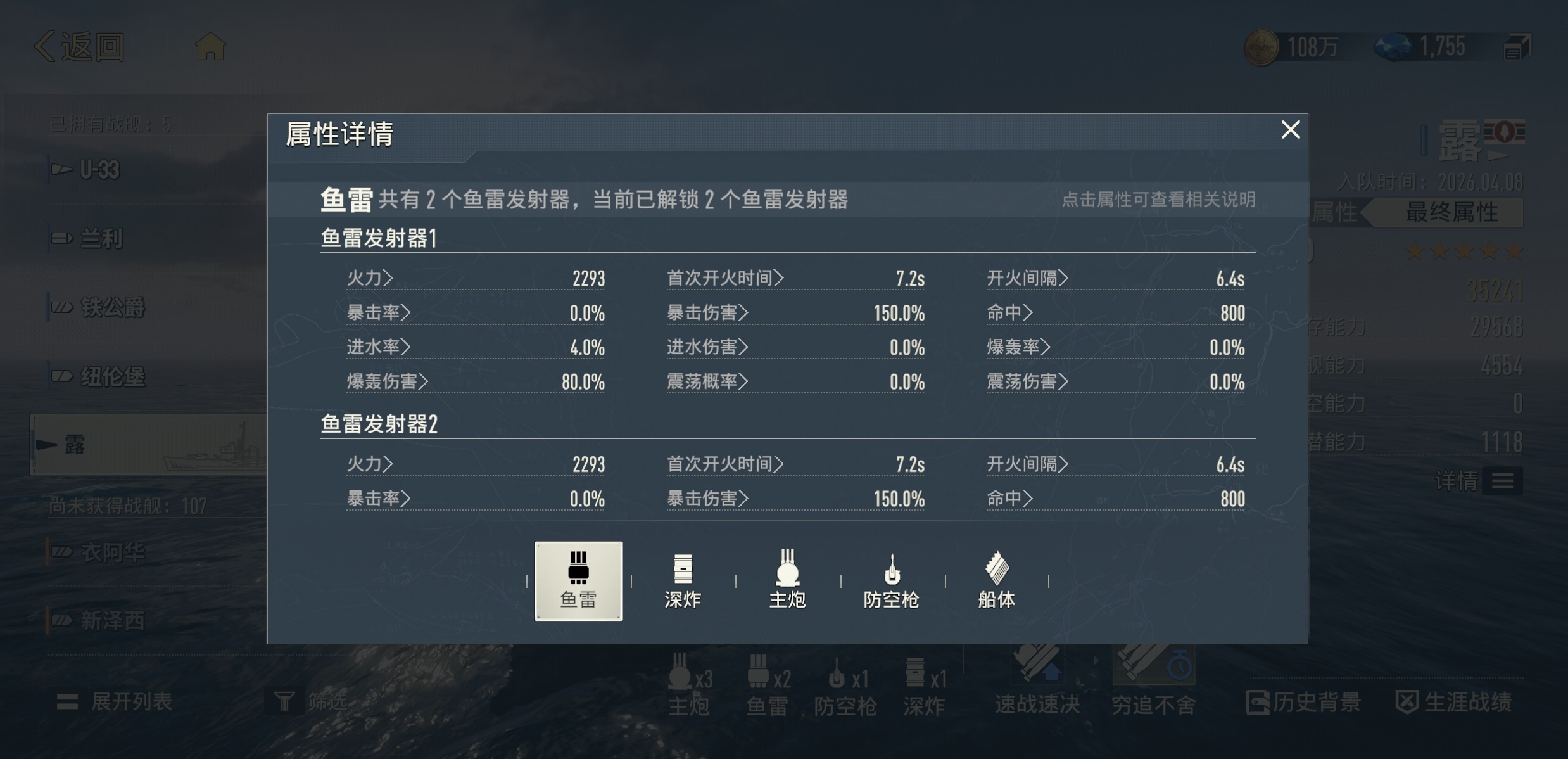 露的核心优势在于稳定的雷击输出体系。舰体尺寸紧凑,机动性良好,配合两组鱼雷发射器,在射速、装填间隔与命中率方面均达到同品质驱逐舰中的上乘水准。此外,她还配备三座主炮、一组防空机枪及一组深水炸弹,形成对水面舰艇、空中单位与潜艇的三维应对能力。尽管受限于蓝色品质定位,各项属性未做极致强化,但整体功能完整性使其成为理想的战术入门载体。