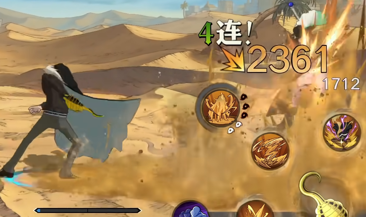 常态技能1为地面重拍后化作沙流突进,接触敌人或抵达终点位置时即破土而出,以沙漠大剑完成抓取攻击,随后爆散形成沙化地表;突进过程中若触碰敌方单位,将直接触发突进判定。强化后该技能先施放沙刀下劈,再以元素化沙漠大剑追加攻击,全程支持通过摇杆微调位移方向;大剑抓取成功后可触发替换技,点击即跃至空中释放“沙漠金刚宝刀”进行垂直打击。