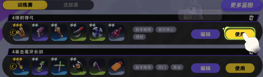 游戏内置独立的武器蓝图管理界面,玩家可在主菜单中直接访问。该系统并非一次性解锁,而是伴随武器收集进度动态生成——每获取一件新武器,系统即自动更新可组合的蓝图方案。蓝图本质为预设的武器搭配组合模板,支持一键启用,显著缩短战前准备时间,尤其契合节奏紧凑的实时对抗场景。