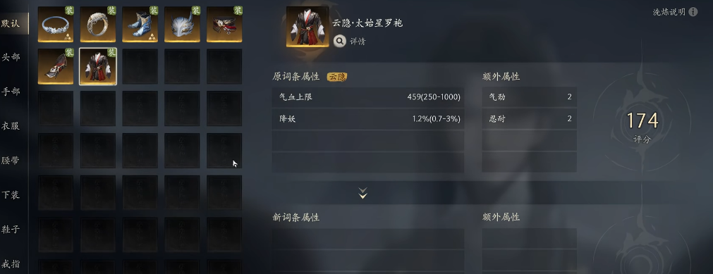 淬炼系统则针对装备的专属特效槽位,如"镇魂·夜行"、"摄魄·三更"等与剧情紧密关联的特殊词条。该系统允许玩家有针对性地提升某项具体数值,最终的强化效果由当前的淬炼等级和评分结果共同决定,每个阶段都有清晰的数值增长曲线和门槛要求。