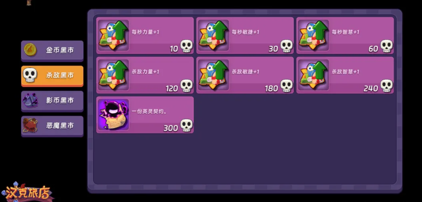 裂隙黑市支持多维度资源流通:金币用于装备强化,杀敌数换取属性成长,影币购买法术书,恶魔之心兑换稀有宝物。其中影币通过影币挑战或三选一强化机制获取;恶魔之心需完成指定恶魔挑战方可获得。