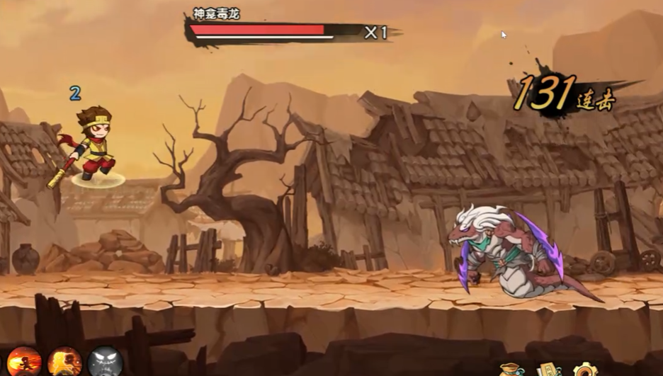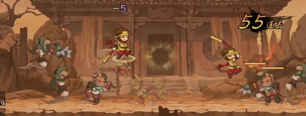 继续向前推进至残破民居区域,会触发第三阶段遭遇战:4只强化野怪。这类敌人基础血量增加35%,攻击会附带小幅硬直效果,建议不要使用纯普通攻击,转而采用“火眼金睛→普攻二段→筋斗云追击”的标准循环,确保每次技能命中后都能衔接后续输出。该阶段战斗结束后没有停顿,立即刷新出6只野怪,从左右两侧同时入场,形成夹击态势。此时应主动向地图中央靠拢,利用“筋斗云”的位移来规避侧翼突袭,并通过合理管理技能冷却实现持续压制。