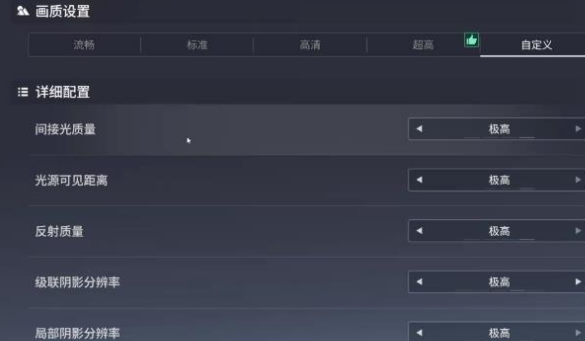 锐化强度应严格控制在10–30范围内。超出此区间容易导致边缘伪影与不自然描边效应,长时间游玩可能引发视觉疲劳。间接光质量建议设置为"极高",该选项对环境光照层次与场景氛围营造效果显著。阴影等级选择"高"即可,在画质提升与性能消耗间达到最佳性价比。