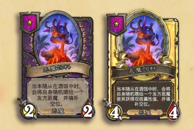 恶魔种族迎来全新关键词——“饲料”。具备该标识的随从将独立存在于特殊随从池中。当酒馆刷新饲料随从时,若场上存在处于“饥饿”状态的恶魔随从,将立即触发吞噬效果:被吞噬的饲料随从属性(包括攻击力、生命值、圣盾、嘲讽等全部数值)将完整转移至该恶魔身上,同时酒馆对应位置重新生成新随从。此机制显著提升恶魔流派前期成长效率,但需注意饲料随从一旦被消耗即永久消失,合理规划刷新节奏与核心恶魔站位尤为关键。