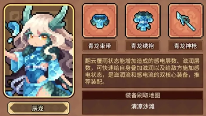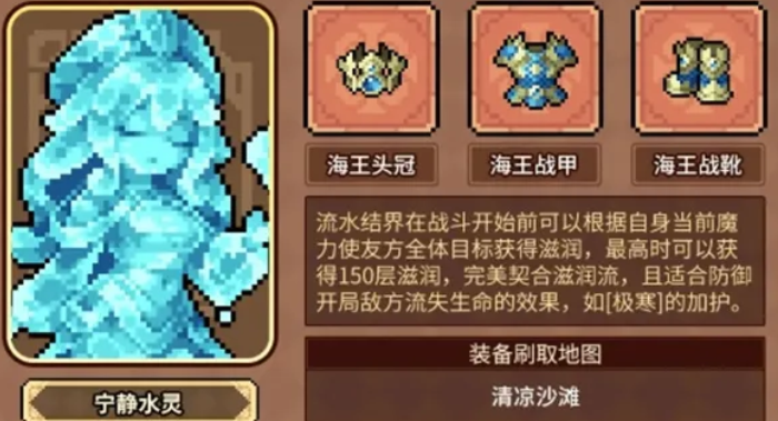 装备搭配需紧密围绕核心机制进行:辰龙优先装备青龙套装,其被动“翻云覆雨”能大幅提高感电触发几率,并在滋润层数加成下进一步增强感电伤害,实现双机制协同增益;宁静水灵则必须搭配海王套装,该套装激活的“流水结界”效果,是开局高层数滋润的唯一来源,对整套阵容的防御强度与持续作战能力具有决定性影响。