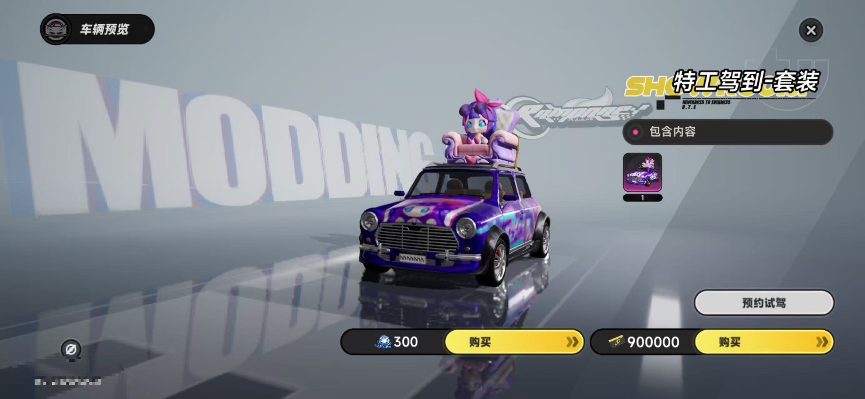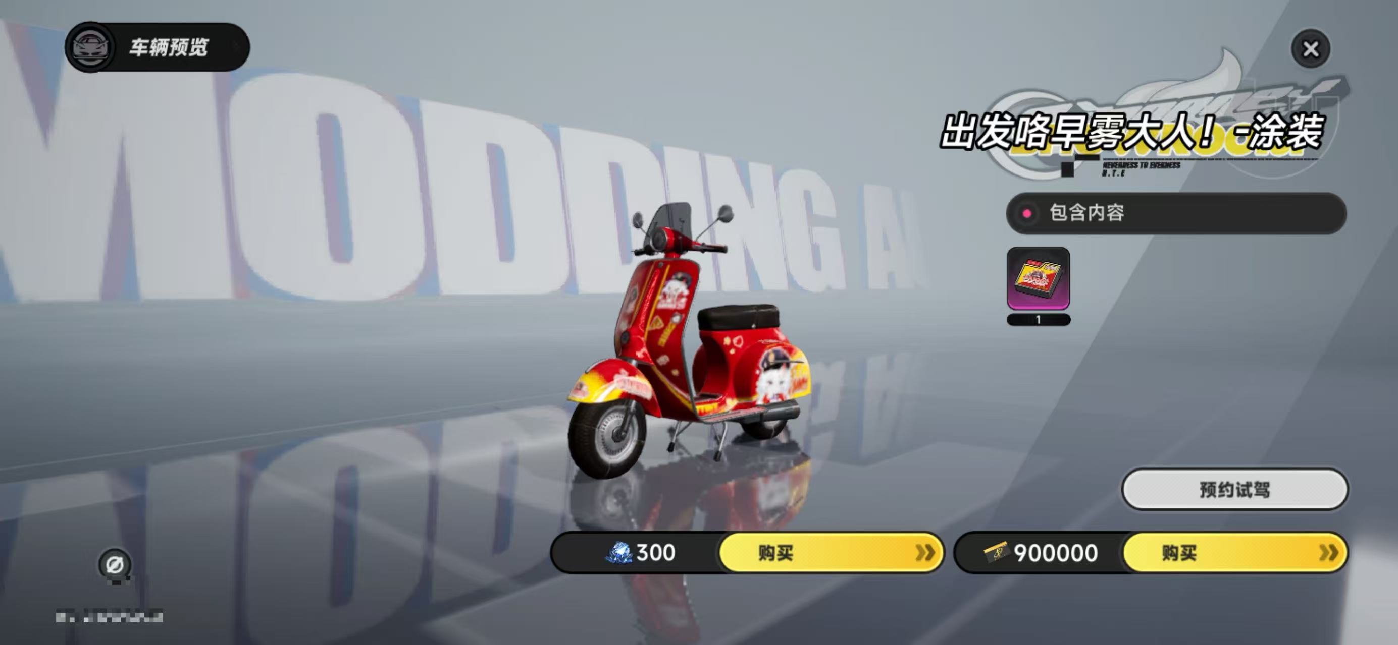 在套装类涂装中,"特工驾到"以复古小型车为蓝本,采用蓝紫渐变配色,并融入趣味公仔图案;车顶还配有随行驶状态轻微摆动的立体玩偶装饰,增添互动趣味。"早雾专属小电驴"主打可爱路线,车身布满早雾角色IP图案,红黄撞色设计营造出活泼欢快的视觉感受。