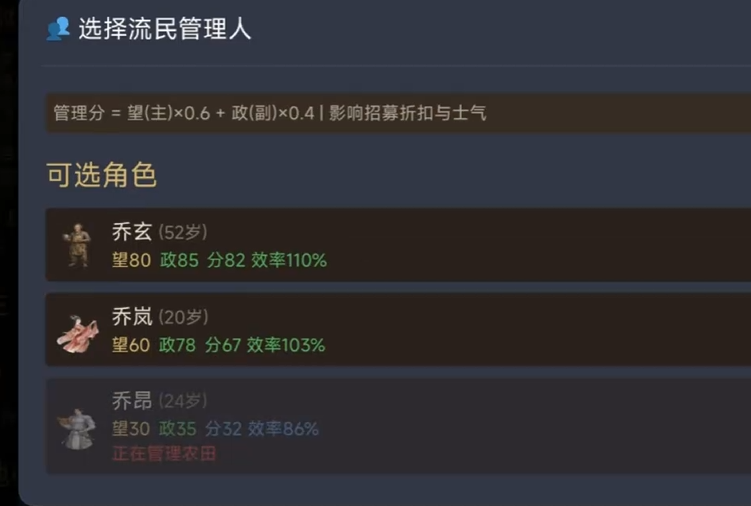 每位族人拥有不同的能力标签:擅长谈判的族人可以被委派到商路运营中,显著降低采购成本;精通识人之道的族人适合执行门客招募任务,不仅能减少资源消耗,还能提升人才引入的成功率;具备卓越统筹能力的族人则适合内务管理岗位,有效提升府邸的运转效率。合理匹配人与岗位的关系,是实现家族可持续发展的关键决策点。