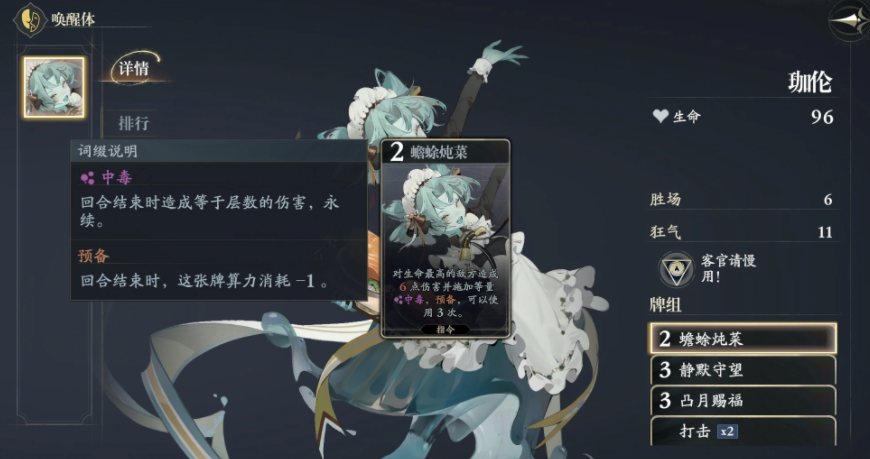在阵容搭配方面,“毒奶流”经验证为当前版本兼具高容错率与持续压制力的主流体系。核心角色宁菲亚具备双阶段毒伤体系:其被动效果在每回合结束时,根据已叠加的层数对所有敌方单位施加等量真实伤害;主动技“百病缠身”则强制使全场敌方单位中毒,构建稳定的持续伤害循环。搭配朵尔——具备全队负面状态清除能力的治疗角色,当己方无异常状态时,该技能则会转为驱散敌方增益效果;其终极技能还附带复活充能机制,显著提升容错空间。珈伦则担任定点破防角色,锁定敌方生命值最高的单位造成6点固定伤害,并附加中毒效果,有效压制敌方核心输出位置。