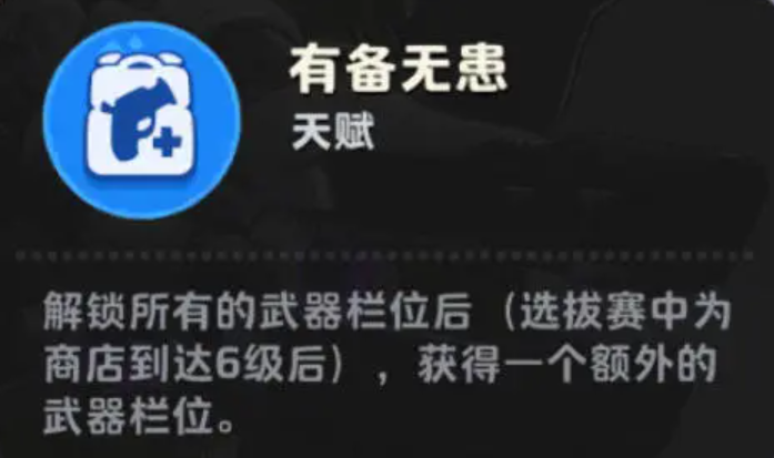 黑洞技能不仅提供范围聚怪与持续伤害,更显著提升弥克斯的走位安全性——即便站位出现失误,也能通过引力吸附化解多点集火风险,转守为攻完成反制。其核心天赋【有备无患】进一步强化这一优势:该天赋永久解锁全部武器栏位,并在商店等级升至6级(即开放6个基础槽位)后,额外追加第7个武器栏。这意味着其他特工最多装备6把武器,而弥克斯的上限可达7把。这1个额外槽位并非简单的数量叠加,而是直接拓展了羁绊组合空间与数值成长维度,是决定阵容上限的关键因素。